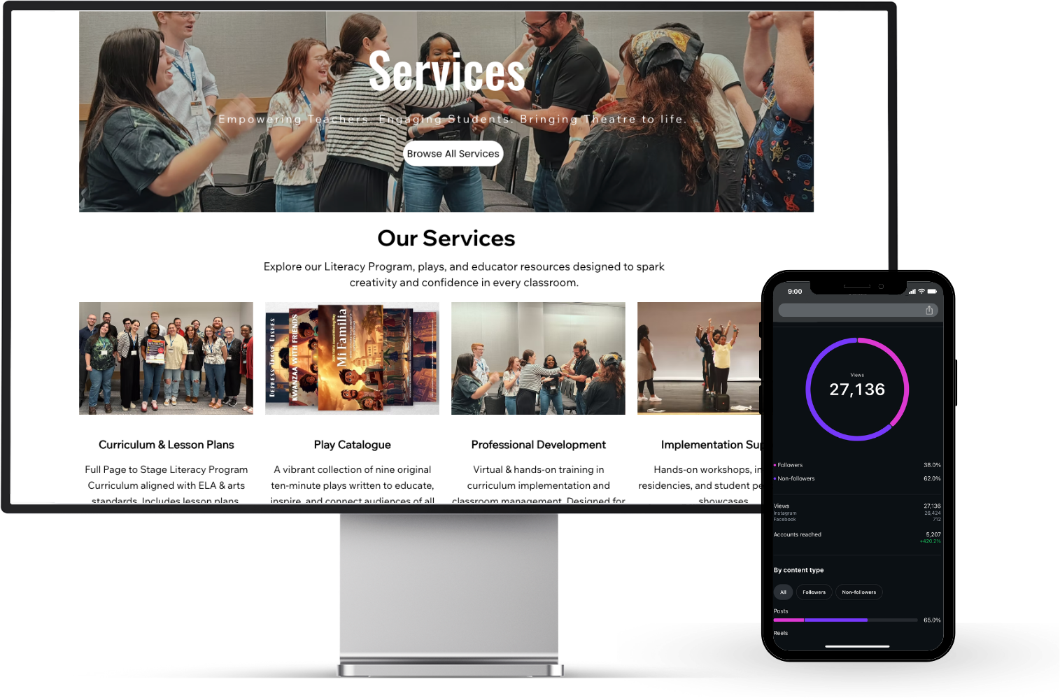 Maroon 9 Community Enrichment Organization delivered impactful arts and literacy programming, but its growth was constrained by informal, word-of-mouth operations. Curriculum offerings were not centralized, there was no streamlined way to package or sell services digitally, and the organization lacked the digital infrastructure needed to consistently attract new partners and customers.